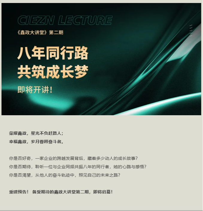 鑫政大講堂,不僅是一個(gè)傳遞知識(shí)的平臺(tái),更是一個(gè)凝聚文化、共享成長、啟迪未來的舞臺(tái)。我們堅(jiān)信,企業(yè)的偉大源于每個(gè)個(gè)體的成長,企業(yè)的榮耀歸于每個(gè)奮斗者的幸福。本期講堂,我們將通過個(gè)人成長洞見公司波瀾壯闊的發(fā)展歷程;通過每一位普通員工的真情流露,感受鑫政大家庭的溫暖底色,詮釋“榮耀鑫政、幸福鑫政” 的深層內(nèi)涵。